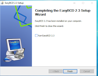 Al final del instalador desmarcaremos la opción “run EasyBCD” y presionaremos finalizar.